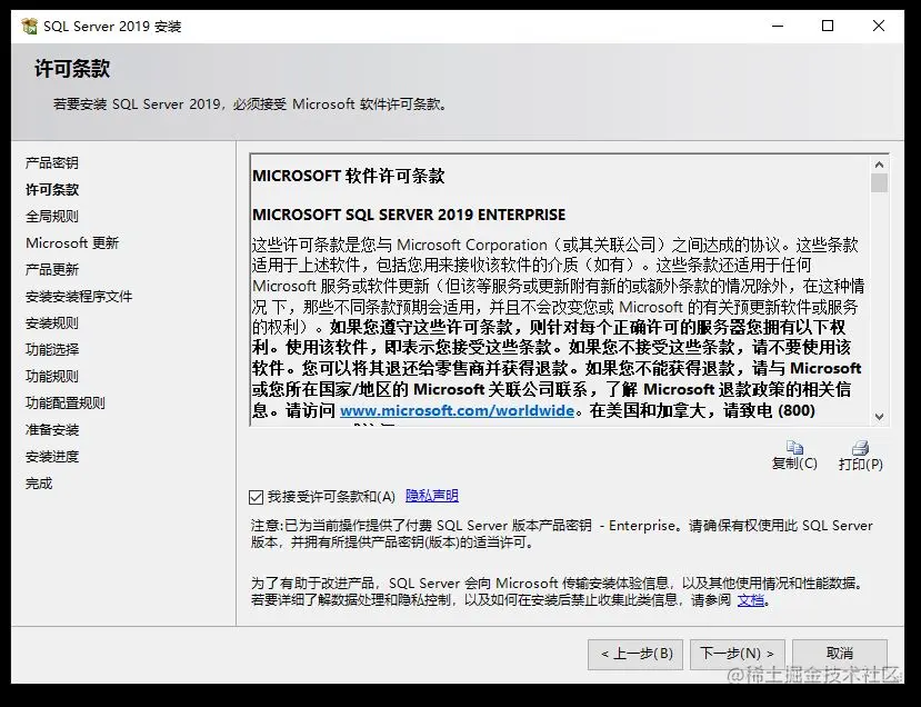 - 勾选“我接受许可条款和隐私声明”,点击“下一步”。