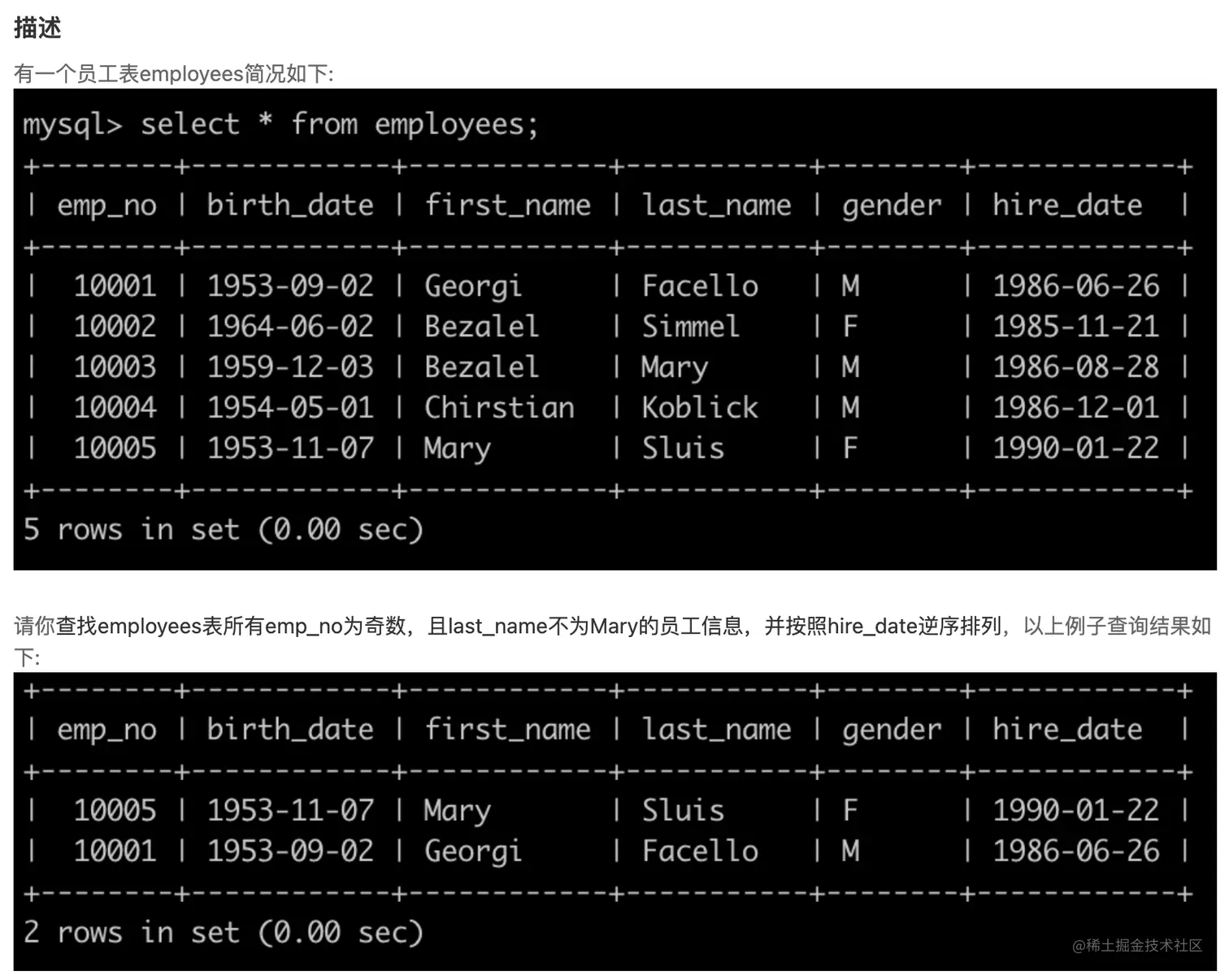 % - order by hire_date desc 按hire_date列降序排序