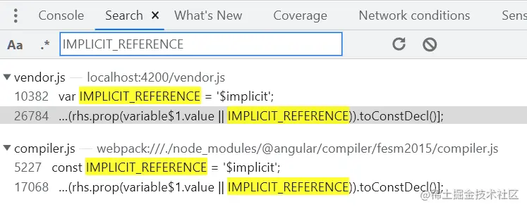 我们在源代码里根据关键字 $implicit 搜索,找到了常量 IMPLICIT_REFERENCE,再根据该常量搜索,就能找到 Angular 框架源代码解析 $implicit 之处: