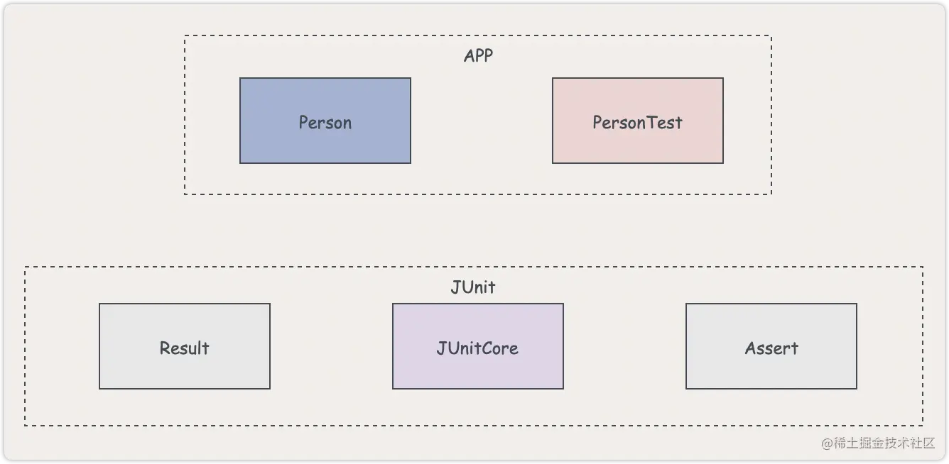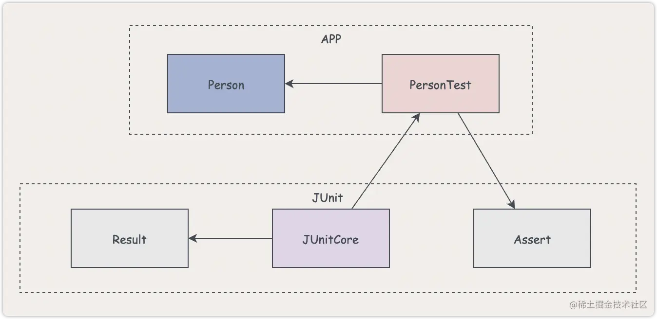 实际上,应该还有一个类,用于展示结果的对象,我们这里暂且叫它Result。可能在JUnit中,它并不叫Result,但是没关系,我们现在只要知道有这么一个类即可。