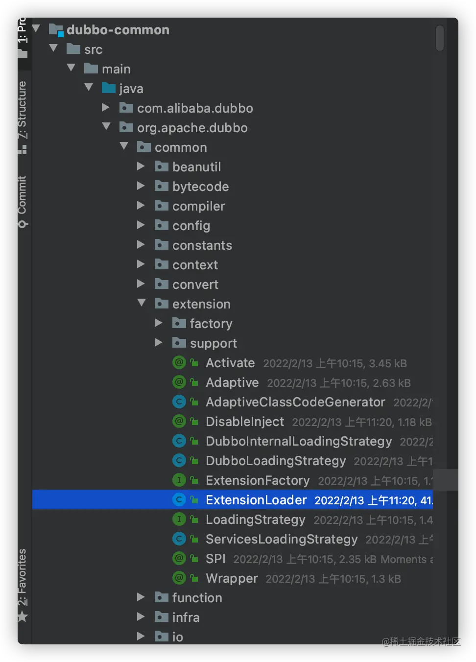 ExtensionLoader位于 dubbo-common 模块的 extension 包中: