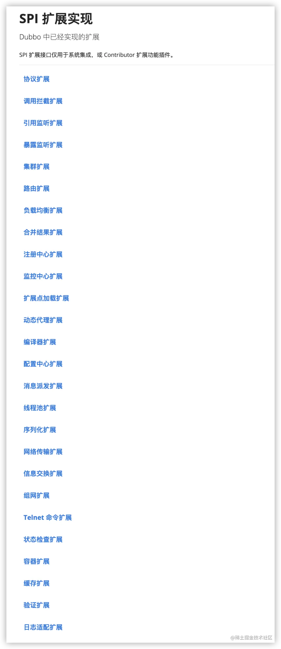 在Dubbo官网上可以看到已定义的SPI扩展有非常多: