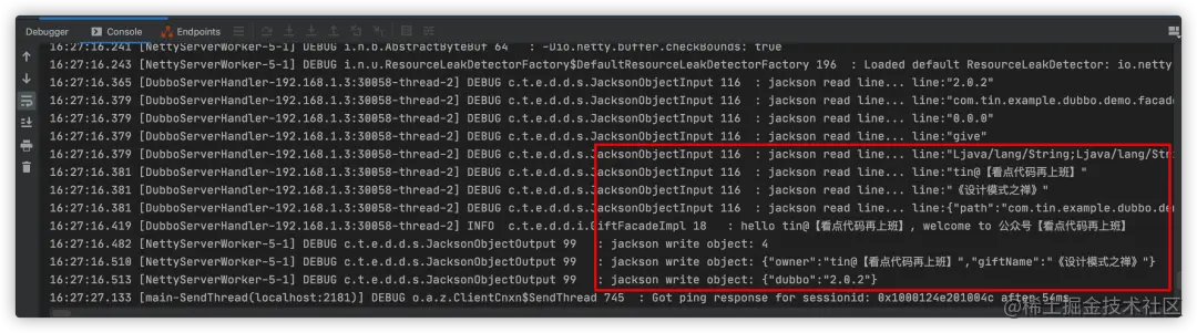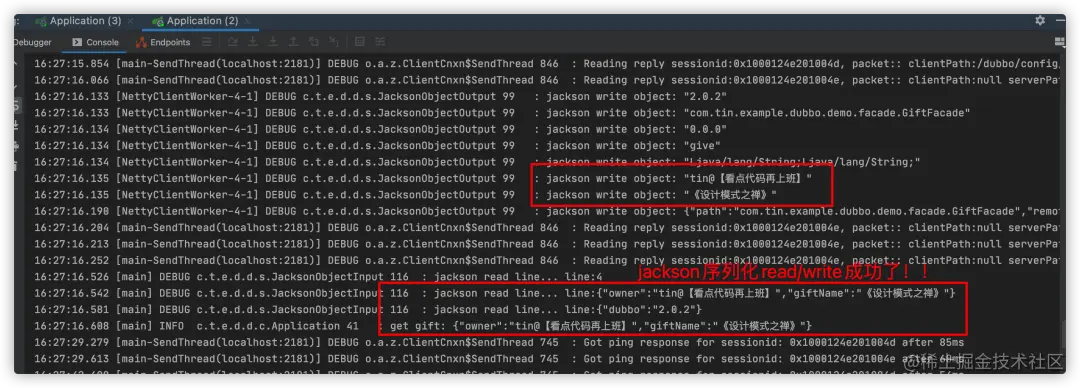 可以看到jason序列化扩展打印的相关read/write日志: