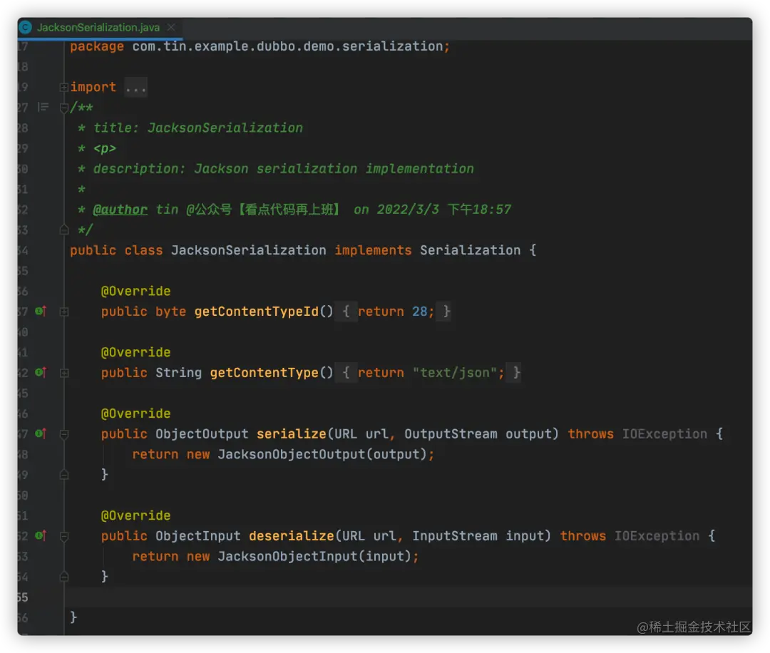 今天,我不去说每个序列化方式的实现细节,只是通过引入jackson包实现给Dubbo新增一种序列化方式。