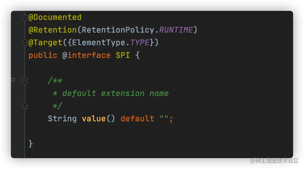 @SPI 注解有一个 value 属性值,用于指定默认的扩展名称。