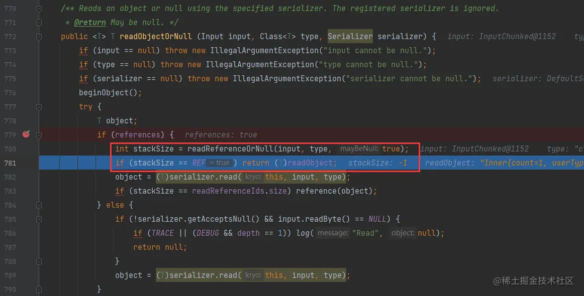 引用在这里的作用相当于一个“缓存”,默认有两种实现ListReferenceResolver和MapReferenceResolver。如果相同对象相同值,kryo偷懒地将引用中的值直接返回,间接地节省了重复反序列化的耗时。