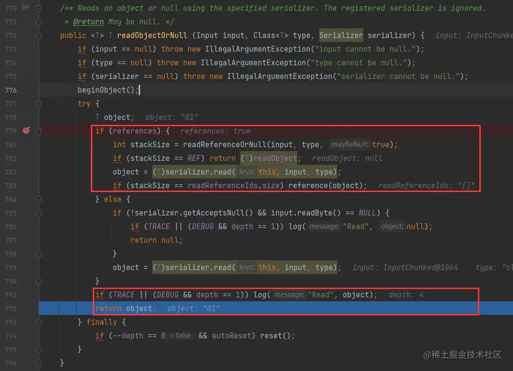我们是知道我们自己使用的是什么序列化器的,那么直接将断点打在read方法里
