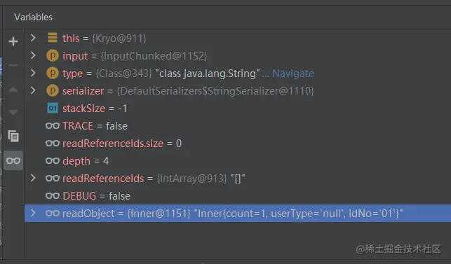 首先跟断点至innerList[0].userType,也就是第一次反序列化Inner.userType。