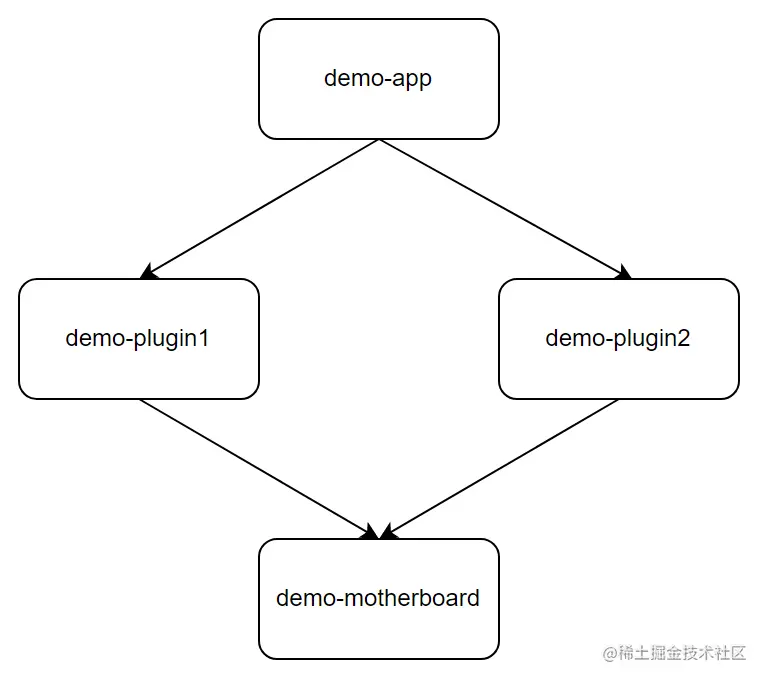 这样做的好处就是无论加了多少个组件要组装的,这里的 vite.config.ts 都不需要再修改了。demo-app 的代码行数理论上来说可以是固定不变的,新的需求如果比较局部可以写在 demo-plugin1 或者 demo-plugin2 中,如果需要全局范围有逻辑关联,则还要改改 demo-motherboard。这样我们通过关注 demo-app 的修改和 demo-motherboard 的修改,就可以比较容易去发现代码组织上的潜在问题。