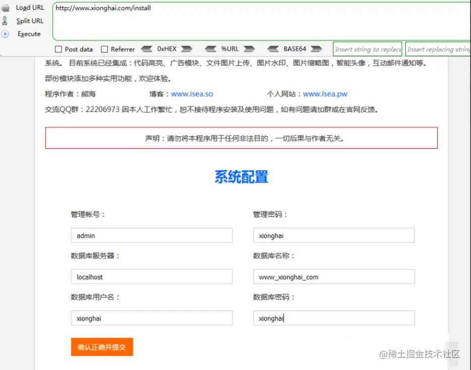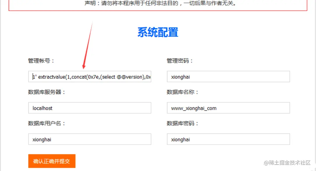 重新安装的时候在user处报错注入
