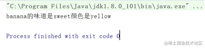 System.out.println(name+"吃一个"+fruit.getColor()+"的"+fruit.getName()+"觉得很"+fruit.getTaste());