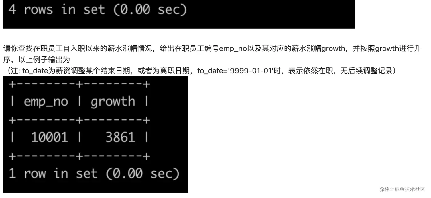 - SQL21 查找在职员工自入职以来的薪水涨幅情况(困难)