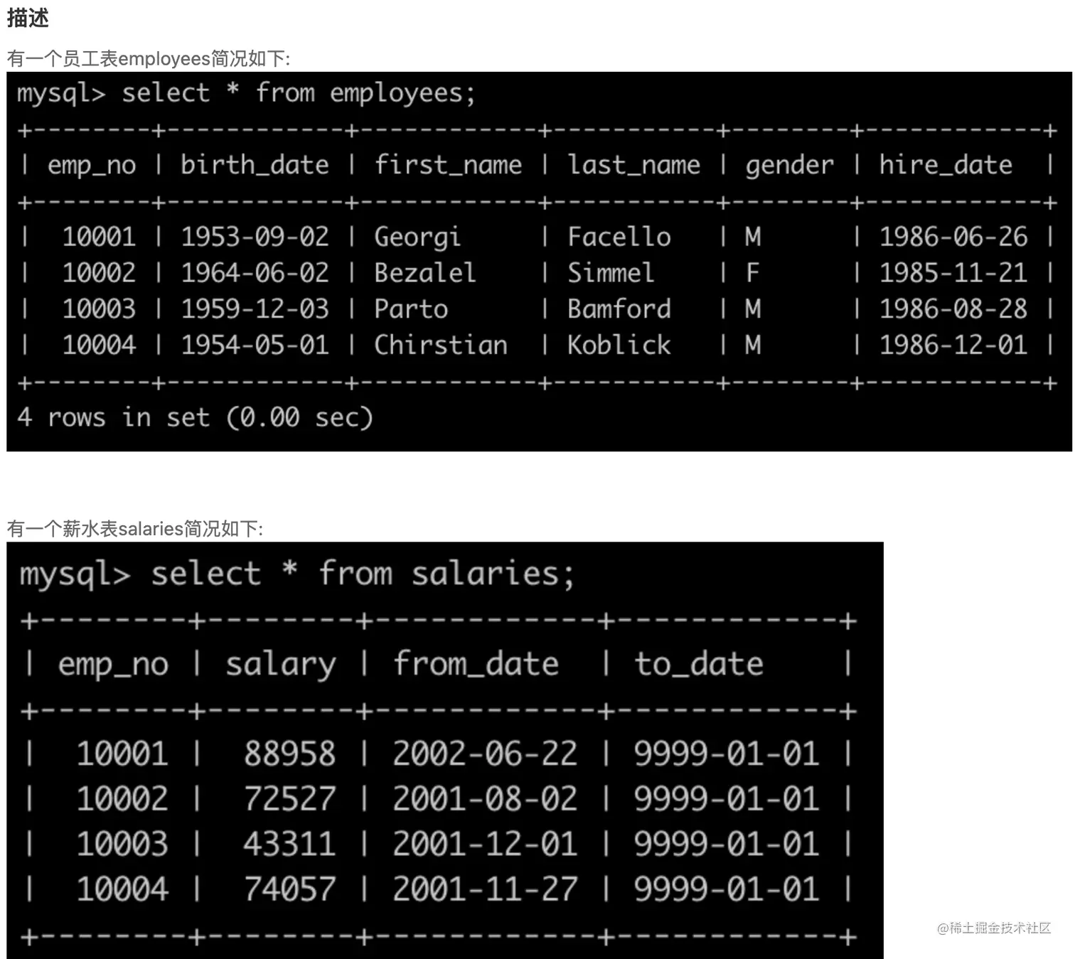- salaries.from_date: 表示薪水开始时间;