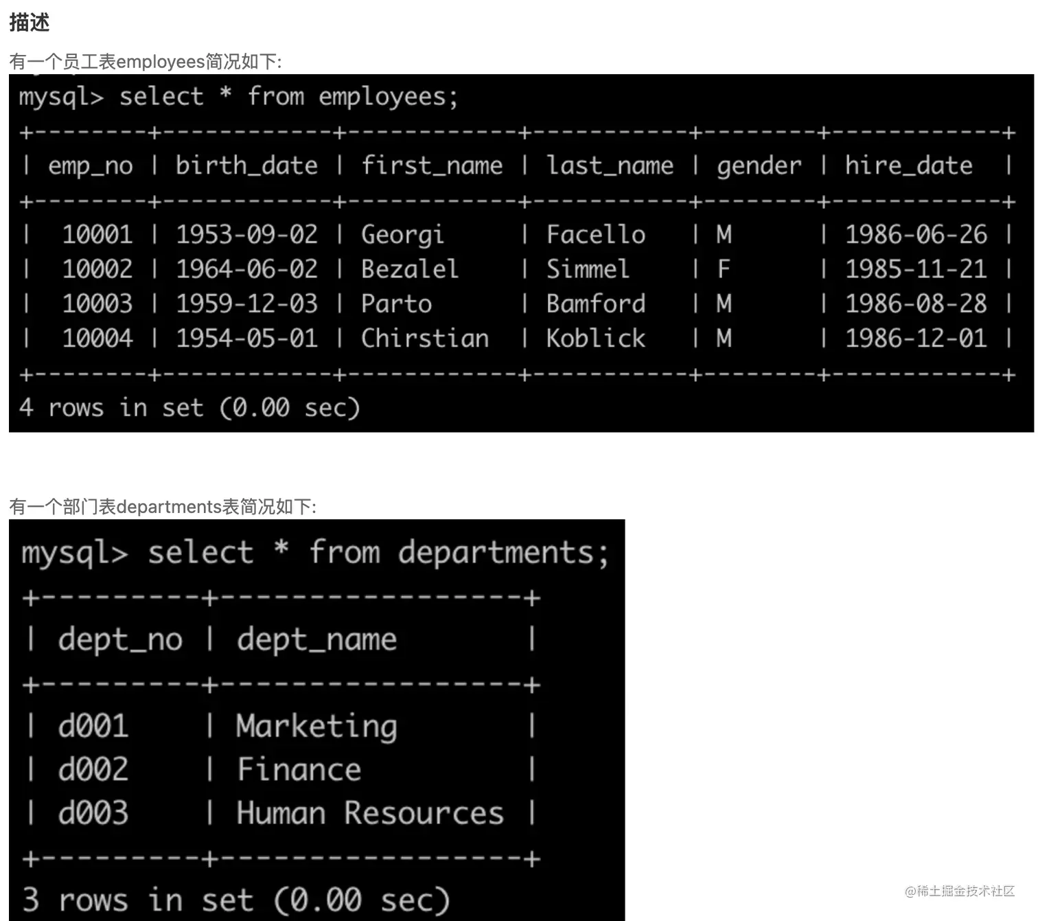 - employees.hire_date: 表示雇佣日期,可以理解为入职日期;