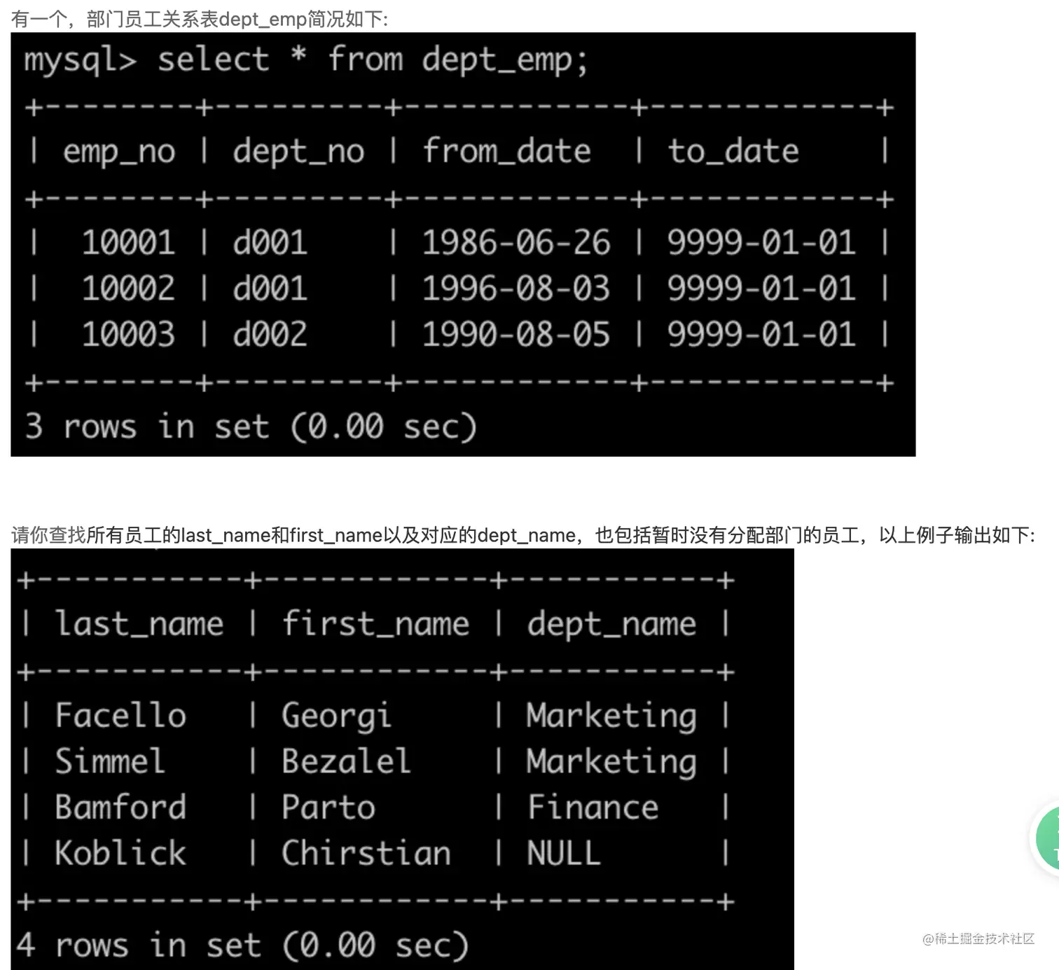 - SQL19 查找所有员工的last_name和first_name以及对应的dept_name(中等)