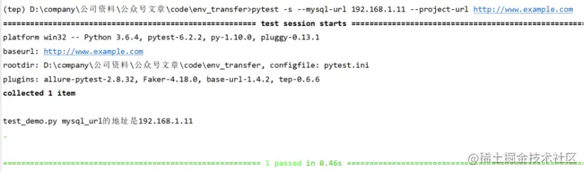 | pytest -s --mysql -url 192.168.1.11 --project-url www.example.com |
