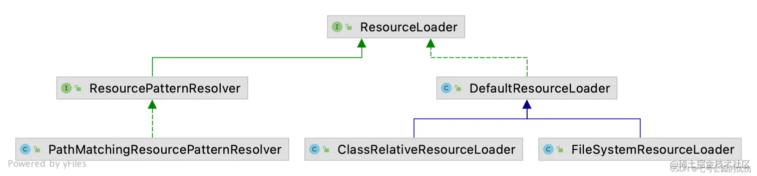 Spring设计了一个Resource接口,它为应用提供了资源的访问能力,该接口拥有对应不同资源类型的实现类。