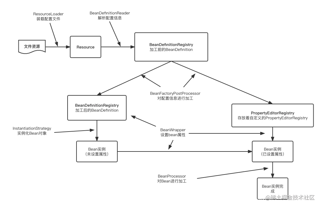 如下图所示,是Spring中加载Bean对象的一个简单过程: