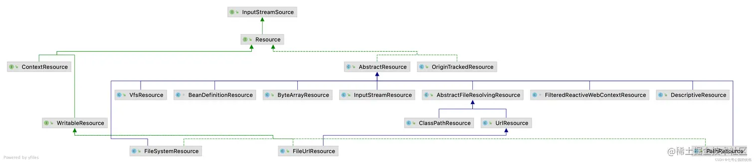 Spring框架使用Resource装载各种资源,如下图为Resource的具体实现类:
