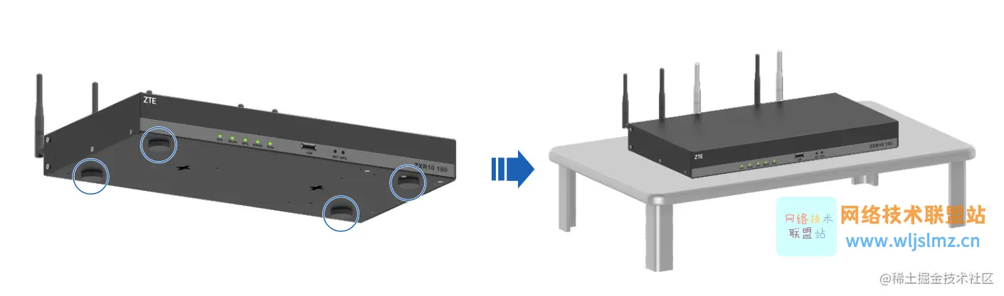 ZXR10 160系列路由器安装到桌面步骤如下: