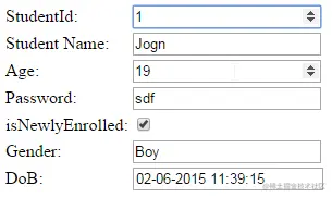 Student Name: @Html.EditorFor(m => m.StudentName)
