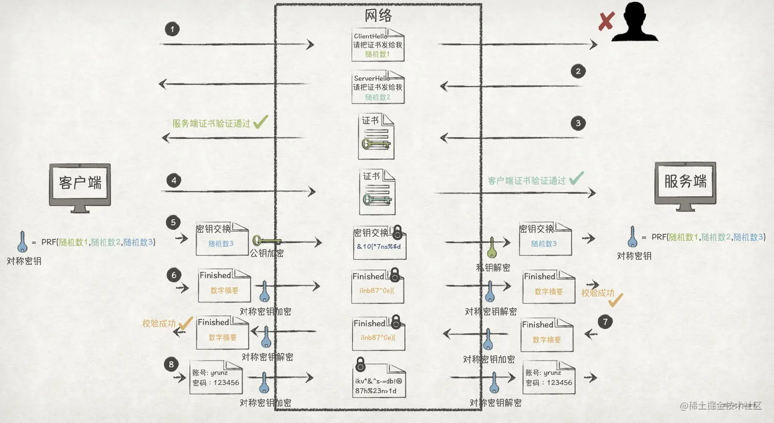 客户端和服务端再根据这 3 个随机数,生成最终的对称密钥。