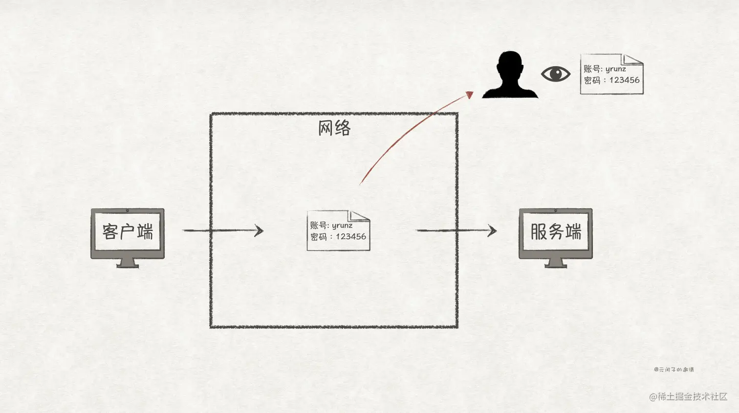 窃听风险主要是因为通信双方在网络上明文传输数据,导致攻击者可以通过简单网络抓包就能获取到通信的内容。