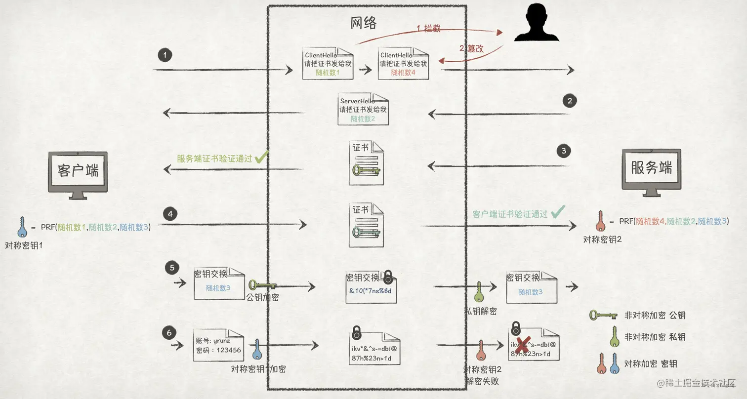 我们可以利用数字摘要来校验所有握手消息的正确性,也即,在握手阶段的最后,通信双方都通过 Hash 算法(比如 SHA256)对自己收到的和发送的所有消息计算出数字摘要,然后使用前面协商好的对称密钥对该数字摘要进行加密,发送给对方。