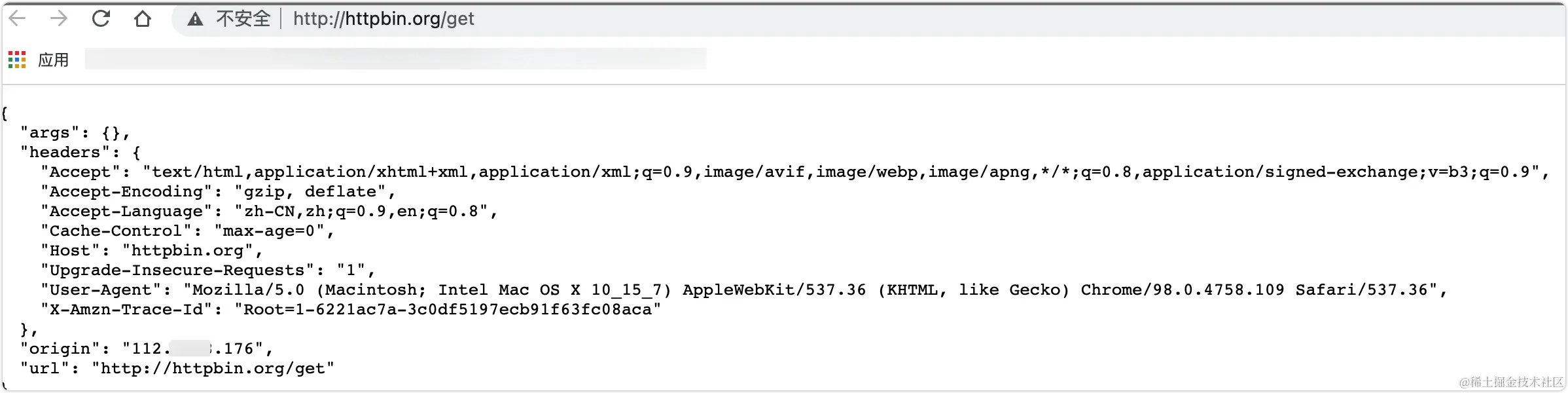 这里还要提到代码中用到的另一个开源项目的地址,对,就是httpbin.org/get,我们可以根据这个地址返回的数据判断我们发起访问该地址的IP。