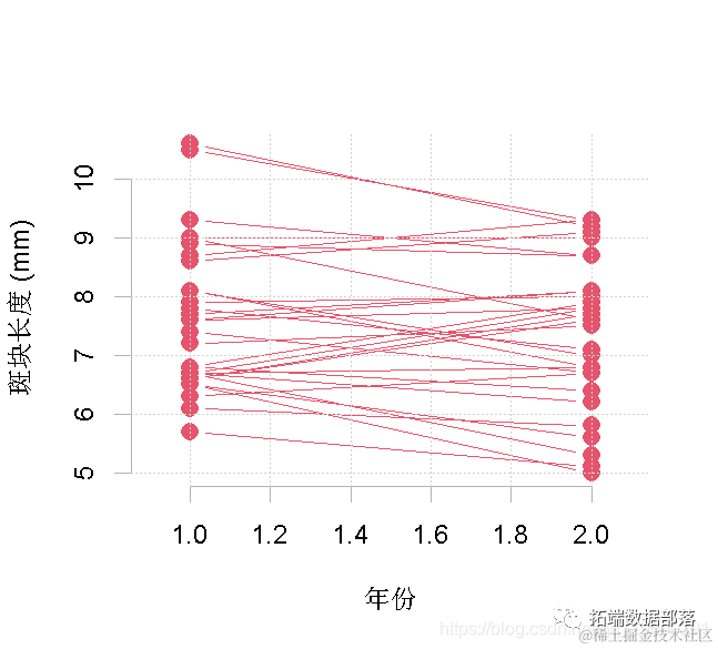 - 从拟合模型中提取方差分量,估计各年斑块长度的可重复性*。