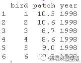 - 对数据进行线性混合效应模型,将单个鸟类视为随机组。注:对每只鸟的两次测量是在研究的连续年份进行的。为了简单起见,在模型中不包括年份。在R中把它转换成一个字符或因子,这样它就不会被当作一个数字变量。按照下面步骤(2)和(3)所述,用这个模型重新计算可重复性。重复性的解释如何改变?