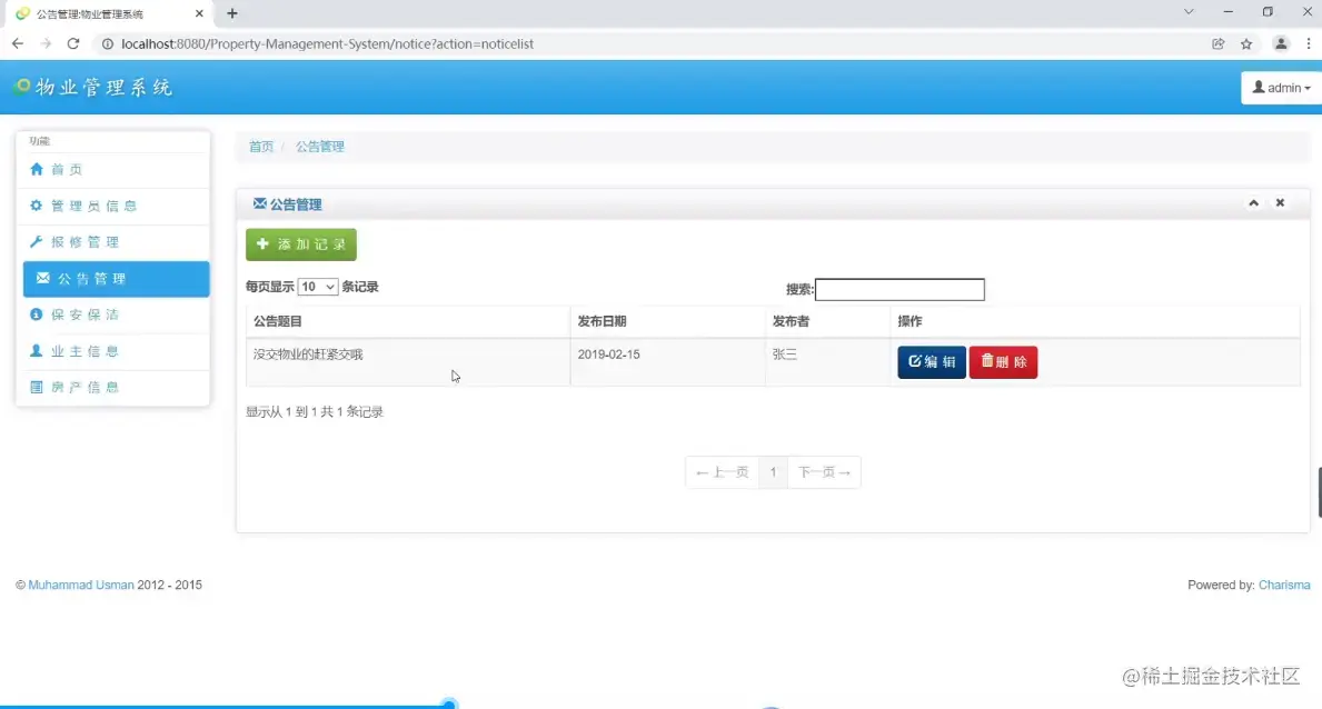 servlet+jdbc+jsp实现的小区物业管理系统,该系统有两个角色一个是管理员一个是业主, 管理员功能有:业主管理、房屋管理、报修管理、巡查管理、公告管理等。 业主功能有:报修管理、公告管理。 点击进入视频教学