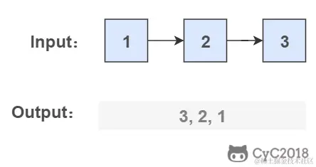 栈具有后进先出的特点,在遍历链表时将值按顺序放入栈中,最后出栈的顺序即为逆序。