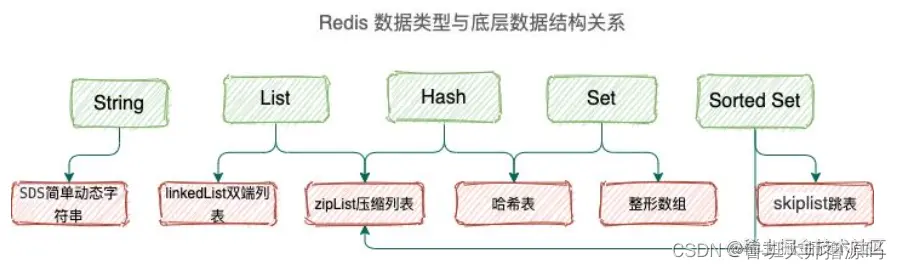 不同的数据类型,底层用一种或多种不同的数据结构支撑。