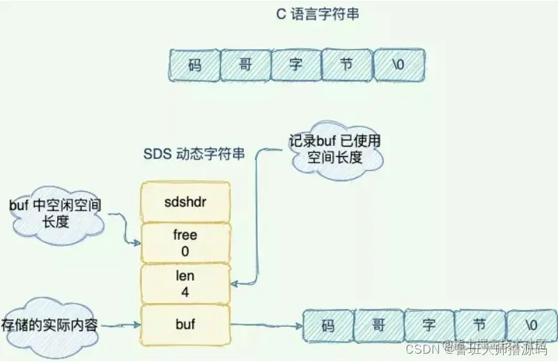 惰性空间释放:SDS缩短,不回收多余的内存空间,直接用free字段记录下来,后续append
