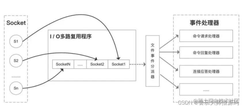 Redis 线程不会阻塞在某一个特定的监听或已连接套接字上,也就是说,不会阻塞在某一个特定的客户端请求处理上。正因为此,Redis 可以同时和多个客户端连接并处理请求,从而提升并发性。