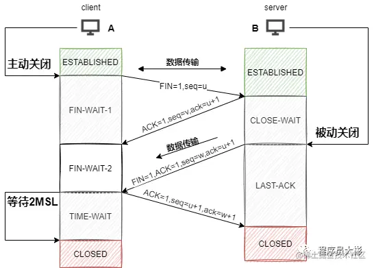 - 防止已失效的连接请求报文段出现在本连接中 最后一次挥手中,客户端会等待一段时间再关闭的原因,是为了防止发送给服务器的确认报文段丢失或者出错,从而导致服务器端不能正常关闭。