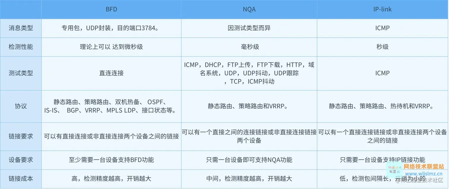 BFD、NQA、IP-link对比
