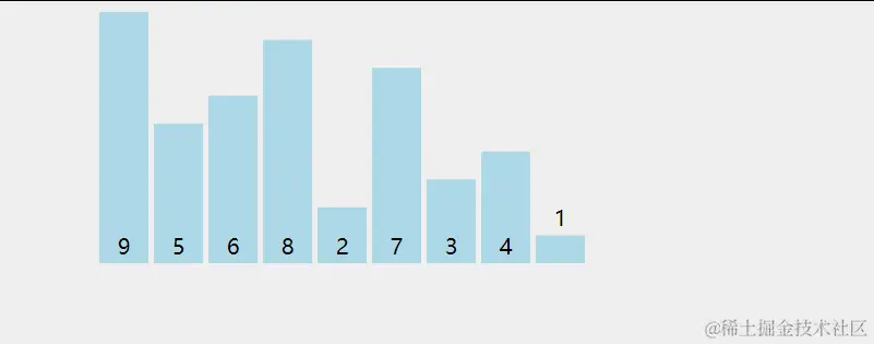 * 持续每次对越来越少的元素重复上面的步骤,直到没有任何一对数字需要比较。