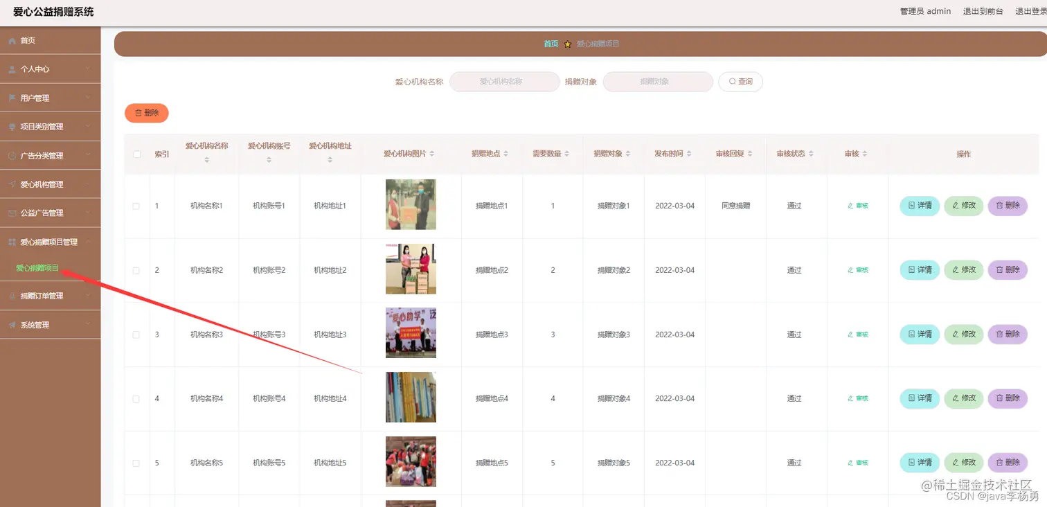 爱心项目捐赠审核:爱心机构发起申请后、需要管理员同意审核才能在前台首页展示爱心项目
