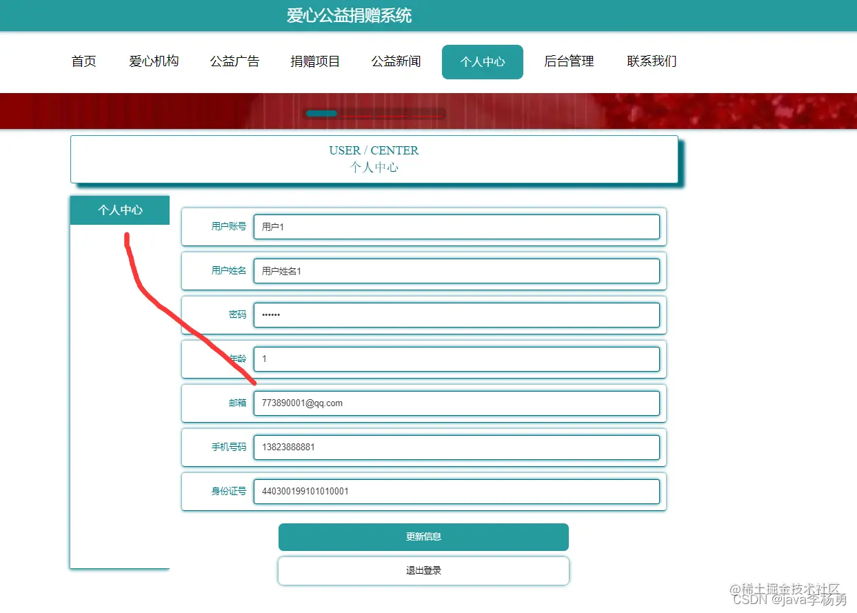用户个人中心: