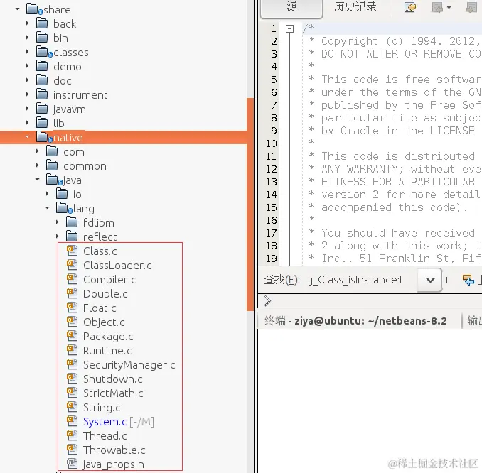 有没有看到很多你熟悉的Java类?比如System.c,里面的就是System.java中的所有native方法。