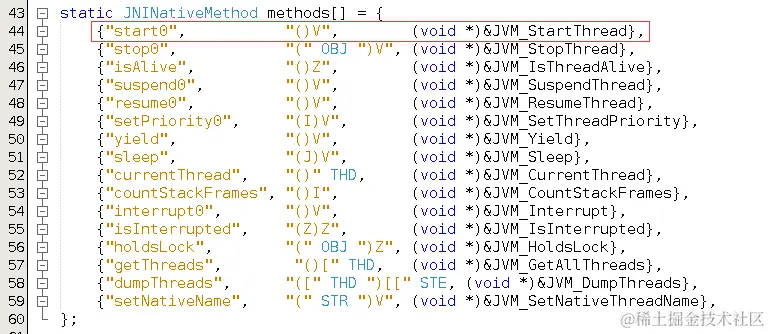 start0是Thread类中的方法,Thread类在jdk中有其对应的.c文件:/openjdk/jdk/src/share/native/java/lang/Class.c