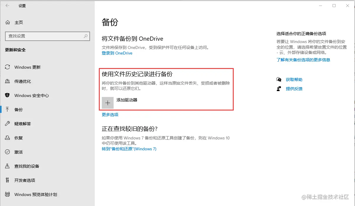 1)win10电脑备份文件操作方式: 依次点击“开始 ”- “设置 ”- “更新和安全 ”- “ 备份 ” - “ 添加驱动器 ”,然后选定你想将备份文件保存的路径就行了,如果您是想将备份保存在移动硬盘或者U盘中,记得将移动硬盘插入电脑后,才可以识别到哦。