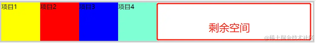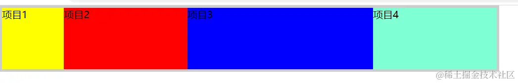 如图所示,不同项目占据的宽度不同,分别是100px、200px、300px、200px,那么这个值是如何计算的呢?如果你事先了解flex-basis,就明白了。
