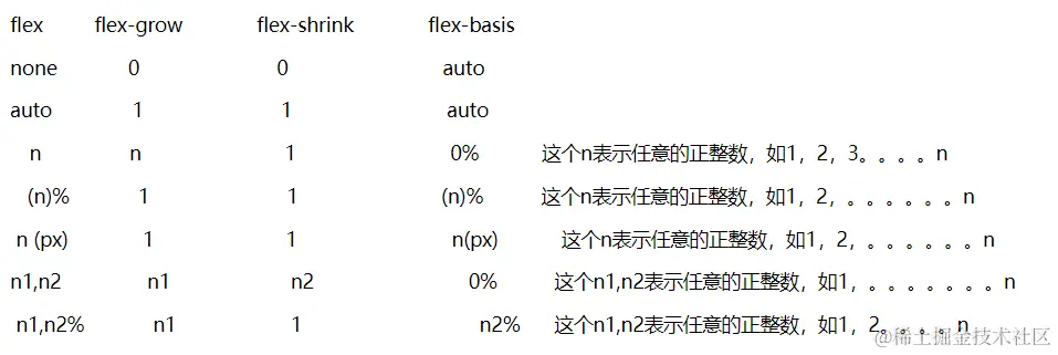 flex属性是flex-grow, flex-shrink 和 flex-basis的简写,默认值为0 1 auto。后两个属性可选