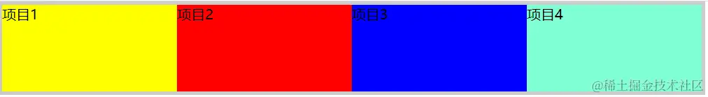 flex-grow 如果设置为了1,则表示这些项目会放大,如图所示,充满整个容器