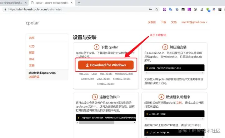 2. 下载Windows版本cpolar客户端