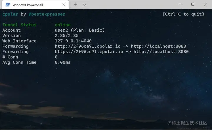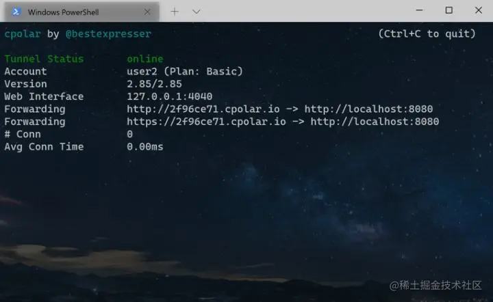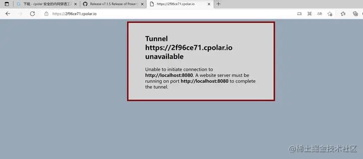 显示如上图灰色的画面,这说明,cpolar已经配置正确,隧道创建成功。