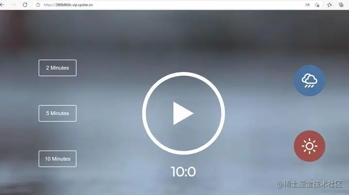 这是一个冥想站点,可以选择2-5-10分钟不同的时间,可以切换下雨与阳光不同的情景。用于放松自我,调解心境,给自己做一个心灵SPA。